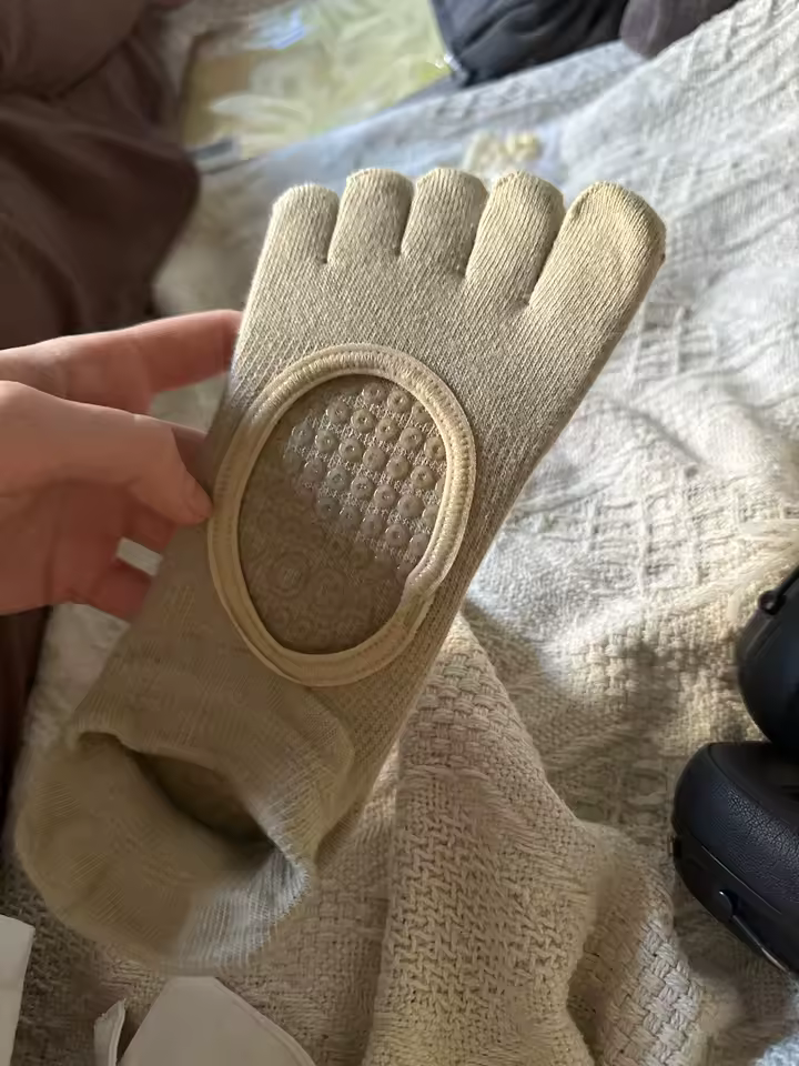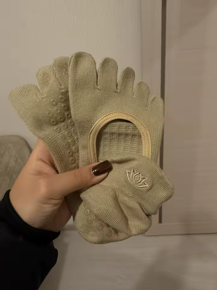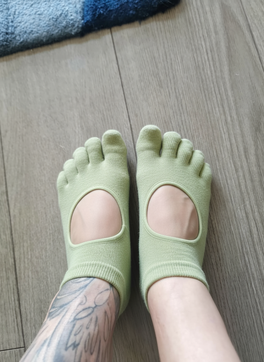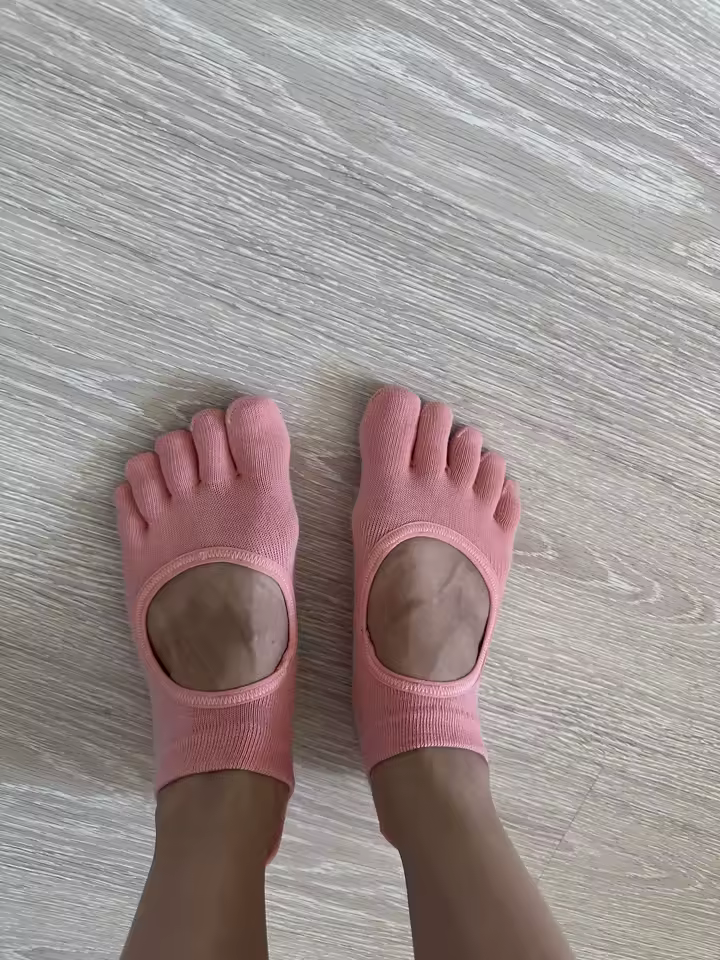 Classic five-toe socks with non-slip sole for natural barefoot comfort, hygiene, and stability in Pilates and yoga practice.